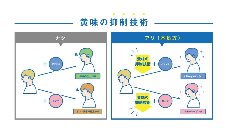 そこで、人気の“くすみカラー”をきれいに発色させるために独自技術を活用し、ブルー系アッシュの「スモーキーアッシュ」と、くすみ感のあるピンクの「スモーキーピンク」を新色として発売します。