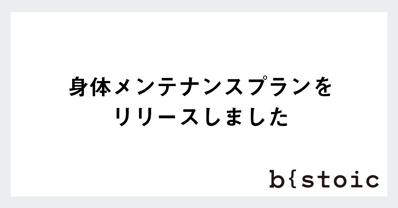 b{stoicはこれまで、身体に不調を抱えパフォーマンスを落としている方をメインに、パーソナルトレーニングを提供してまいりました。そんなb{stoicの強みを生かし、少ない来店頻度でもパフォーマンス改善が見込める『身体メンテナンスプラン』をリリースしました。