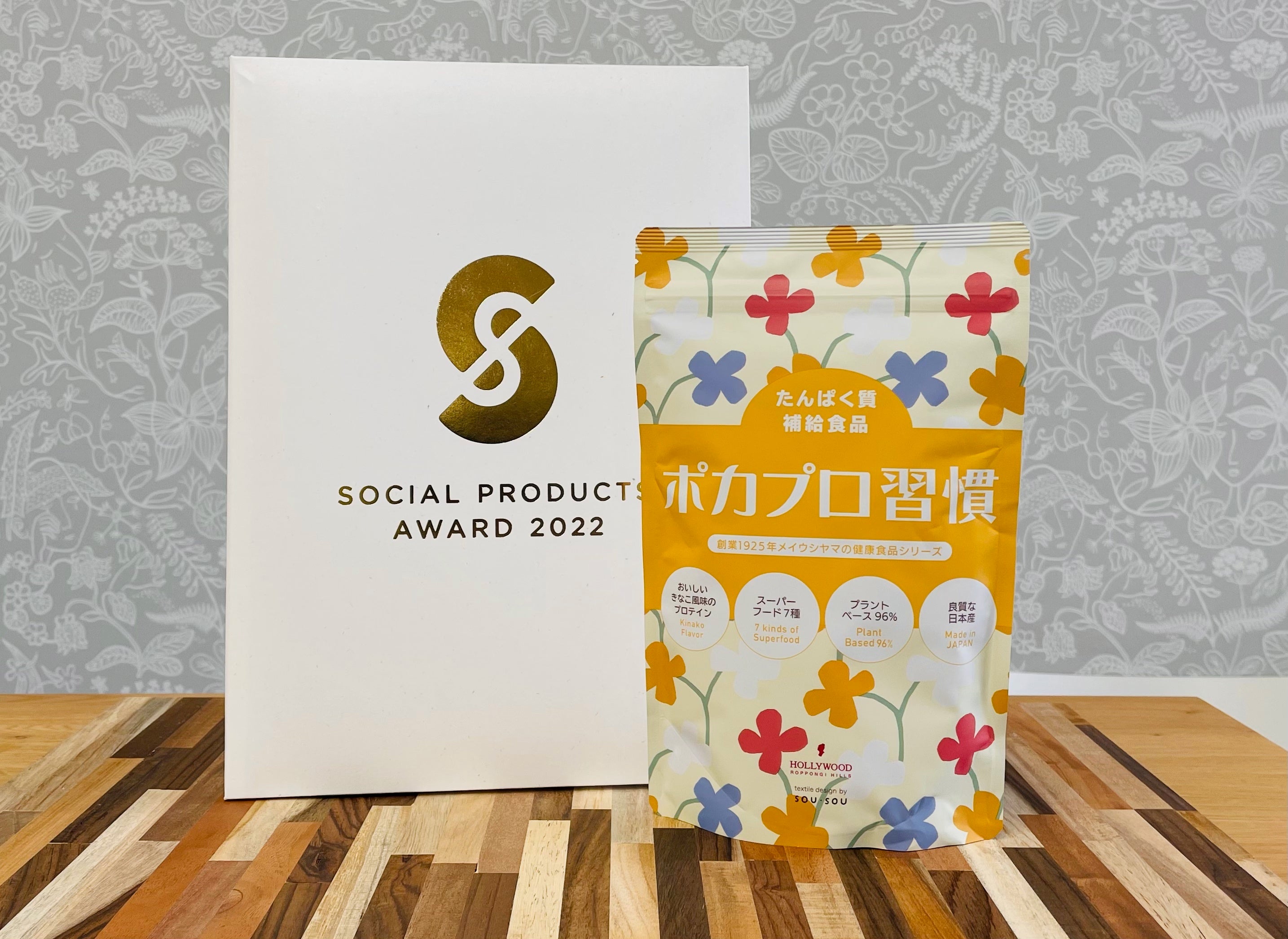 ハリウッド株式会社(本社:東京都港区六本木)が研究・製造し、発売以来人気の大豆プロテイン『ポカプロ習慣』が、一般社団法人ソーシャルプロダクツ普及推進協会が主催するシャルプロダクツ・アワード(SPA)【自由テーマ】生活者が「持続可能な社会」づくりに参加できる商品・サービス部門で、2022年ソーシャルプロダクツ賞を授賞いたしました。(2022年2月16日発表)