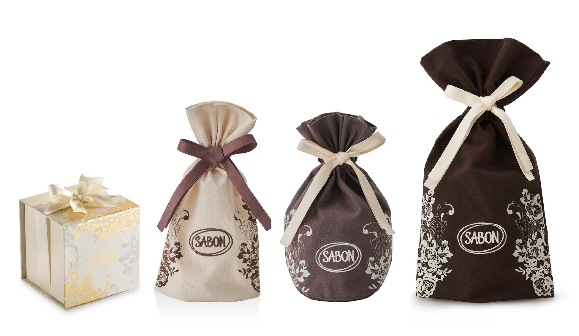 オーガニックコットンを使用し、SABONロゴをあしらったエレガントなデザインのラッピングバッグとともに、大切な方へ心のこもったギフトをお届けいたします。