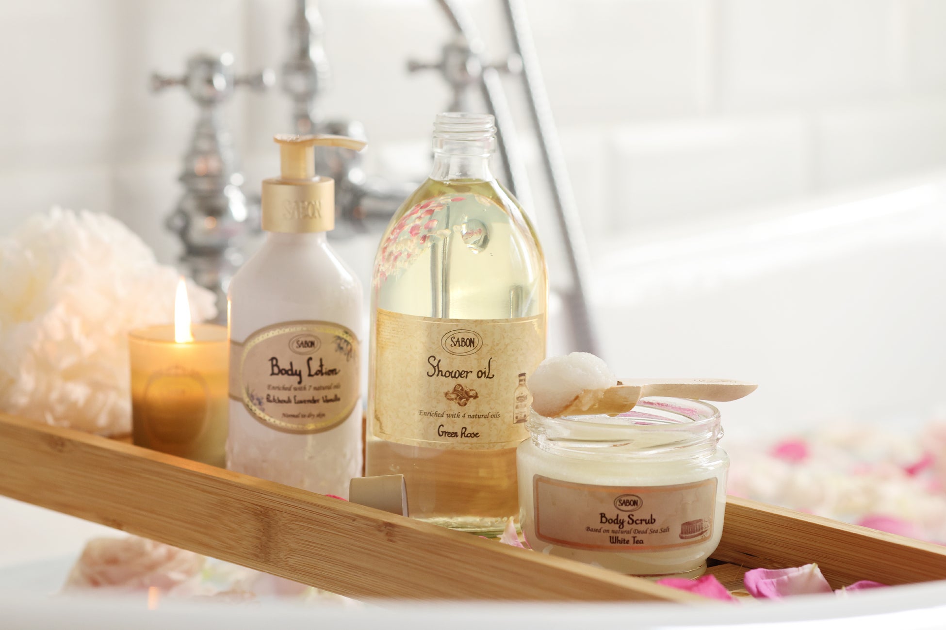 ミネラル豊富な死海の塩やボタニカルオイルをブレンドしたソルト-イン-オイル処方の『ボディスクラブ』をはじめ、肌も心も満たすようなSABONのボディケアを日常に取り入れて。