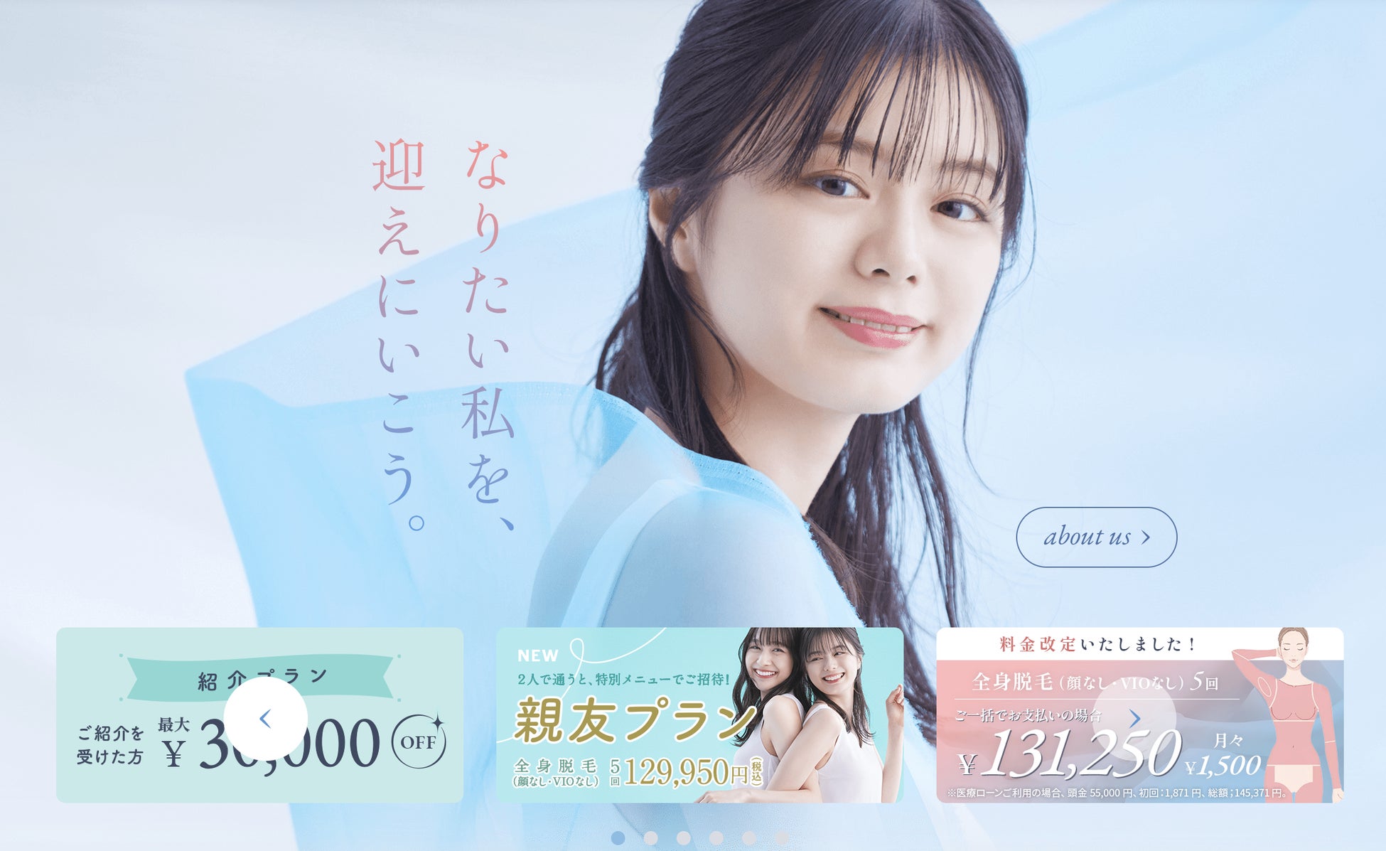 「グロウクリニック」は、拠点数を全国18拠点(2022年2月時点)に拡大しており、今後より多くのお客様に医療脱毛をご利用いただくために2022年2月17日(木)より料金プランをリニューアル。それに併せて、イメージキャラクターにモデル・女優の紺野彩夏さんを起用し、サービスサイトのリニューアルをおこないました。サービスサイトでは、グロウクリニックの新たなコンセプト「なりたい私を、迎えにいこう。」を掲げ、医療脱毛の情報を発信していきます。