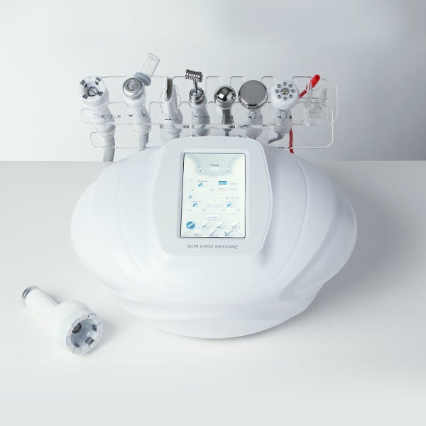 イオン導入・超音波・スプレー・吸引・スクラバー・RF・バキュームの7つの機能が搭載された複合型の業務用美顔器です。簡単操作に加え、コンパクトサイズで一般的なサイズのワゴンや卓上に収納ができ、使い勝手抜群です。 この1台で幅広い施術ができ、サロンのメニュー拡充を考えているサロンにお勧めの美顔器です。