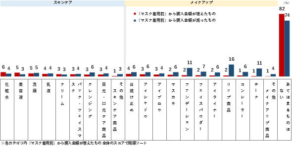 マスク生活でスキンケア商品とメイクアップ商品の購入金額に変化