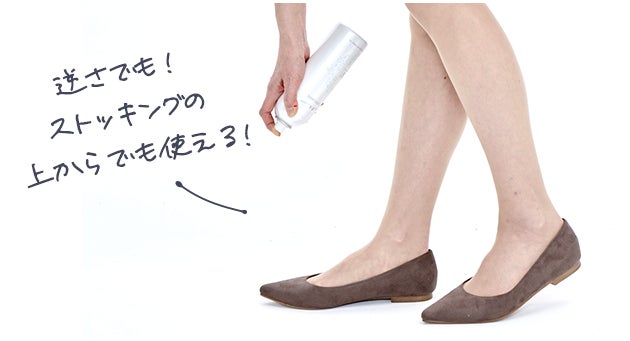 スプレータイプのため、手に取って伸ばす手間が無く時短に!また、逆さでも噴射するため足元にも簡単にサッと塗ることが出来ます。ストッキングの上からの使用もOKです。外出時でも簡単に日やけ止めの塗り直しが叶います。
