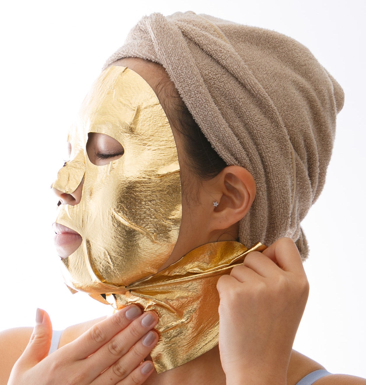 STEP2:ゴールドの面を表に、目・鼻・口の位置に合わせ顔全体と密着させます。