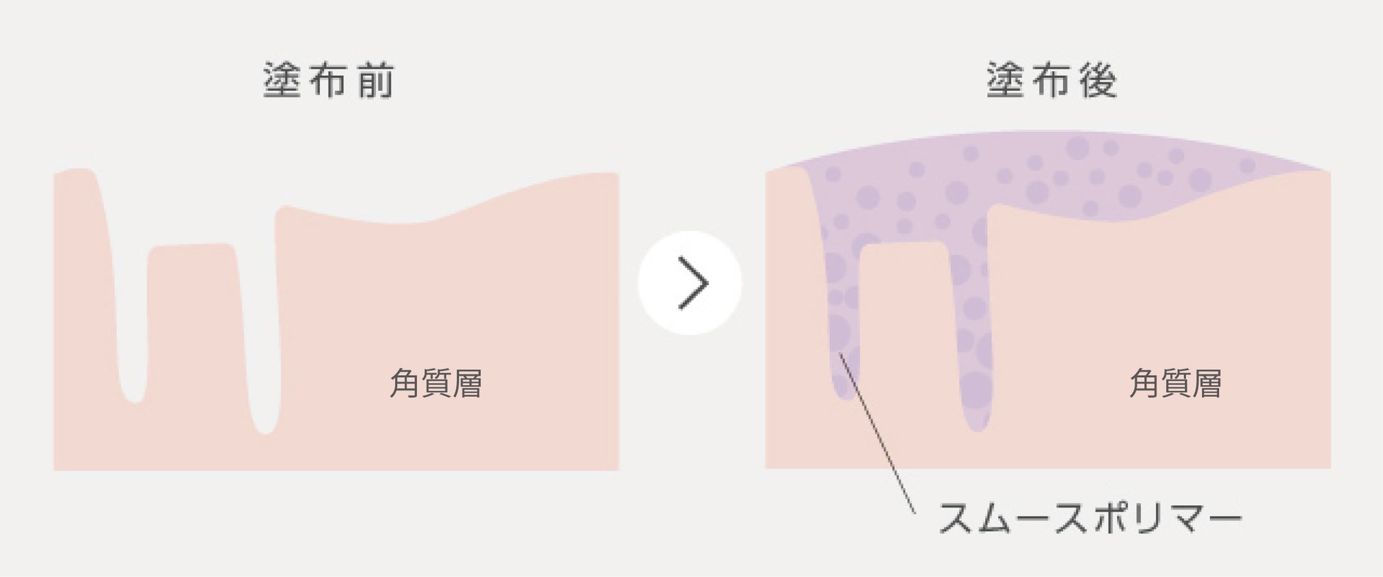 スムースポリマーを配合しており、素肌の凸凹をフラットに整えて、ファンデーションの密着力・持続力を高めます。