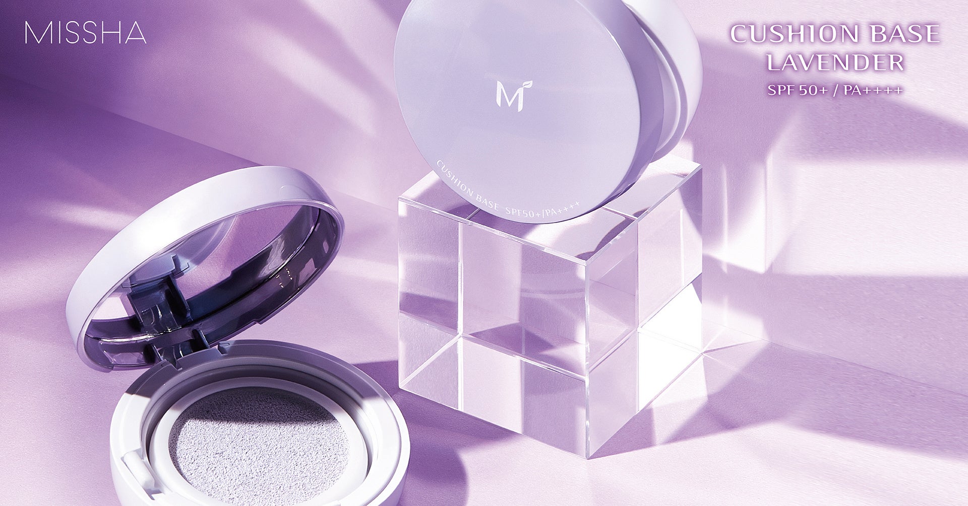 「M クッションベース(ラベンダー)」は、透明感*1とツヤ感を与える肌なじみの良いラベンダーカラーを採用したトーンアップ*1クッション下地です。これまではミシャジャパン公式オンラインショップ限定カラーとしてECのみで発売していましたが、ブルーとピンクがミックスされたラベンダーカラーが血色感*1と透明感*1を両立できることから、ユーザーからの高い人気を獲得し、マツモトキヨシグループと、ココカラファイングループ限定*2で店頭での販売が決定いたしました。