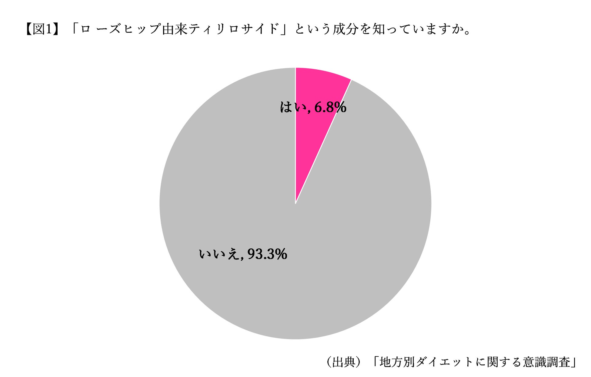 図1の通り、ローズヒップ由来ティリロサイドの認知率は、6.8%とまだまだ知られていませんが、ローズヒップエキスは「体脂肪を減らす機能」を訴求できる機能性表示食品対応素材として、サプリメントをはじめ、飲料や菓子製品など、さまざまな食品に採用されています。