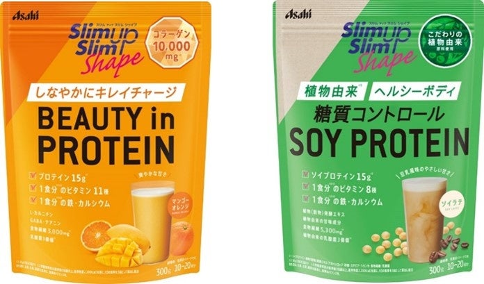 アサヒグループ食品株式会社(本社 東京、社長 川原浩)は、「スリムアップスリムシェイプ」ブランドから『スリムアップスリムシェイプ BEAUTY in PROTEIN』『スリムアップスリムシェイプ 糖質コントロール SOY PROTEIN』を3月7日より全国で新発売します。