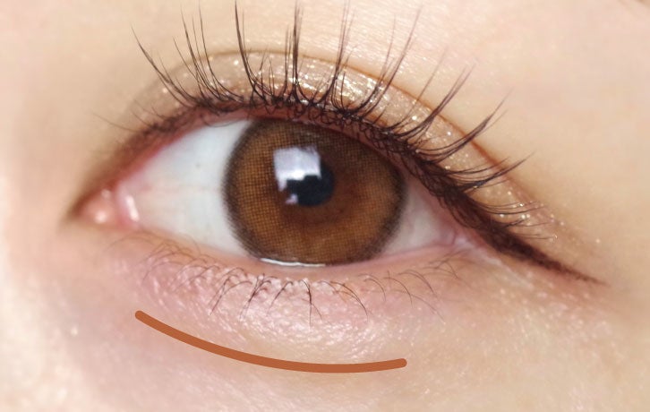 涙袋の下にラインを描きます。濃さが足りない場合はお好みの濃さになるまで重ねて描いてください。指でぼかすとさらに自然な涙袋に仕上がります。