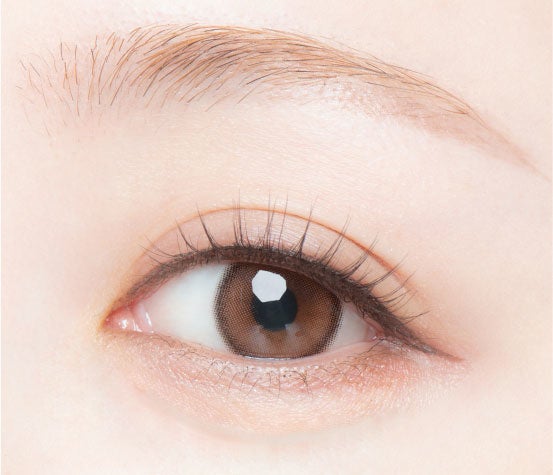 ふたえの線に沿ってラインを描きます。目頭側と目尻側を少し長めに描くと目幅が拡がった大きな目元の印象に仕上がります。