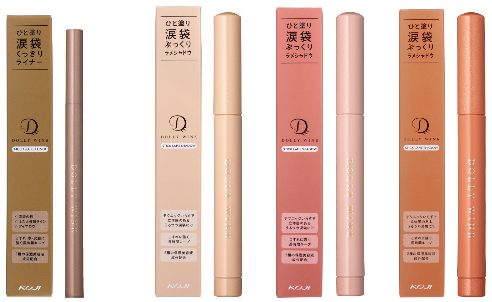 今回新たに、涙袋の影ラインやアイブロウにも使用できる極細ライナー「ドーリーウインク マルチシークレットライナー」(全1種)と、なめらかな描き心地で立体感のある涙袋が作れる「ドーリーウインク スティックラメシャドウ」(全3種)が登場します。