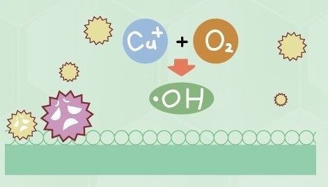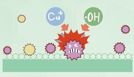 Cufitec®で使われている一価銅化合物から溶出する一価銅イオンが、二価銅イオンと比較して酸化されやすい性質があるため、活性酸素が発生します。