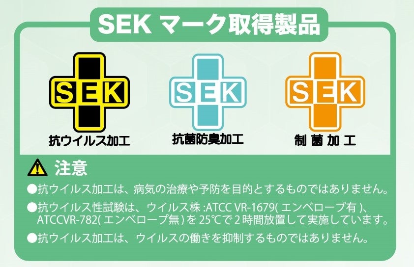 ※SEKマークは、一般社団法人繊維評価技術協議会(JTETC)が実施する認証制度)です
