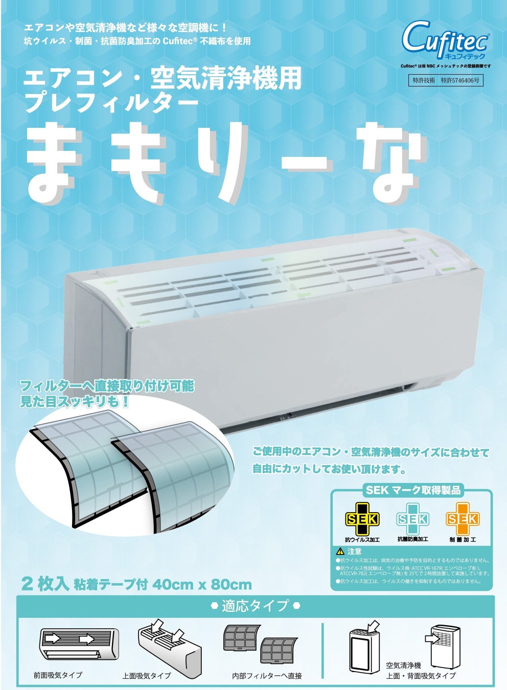株式会社toyouは空気清浄機に簡単に取り付けができる高機能プレフィルター「まもりーな」を本日より発売します。