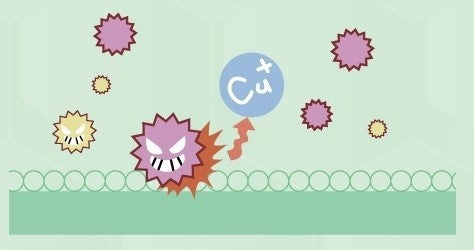 一価銅化合物ナノ粒子がウイルスや細菌とぶつかった際に、水分中に一価銅イオンが溶出する