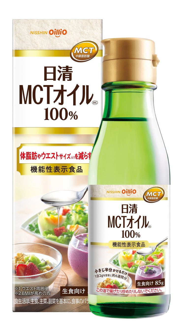 本品には中鎖脂肪酸(オクタン酸、デカン酸)が含まれます。中鎖脂肪酸(オクタン酸、デカン酸)はBMI が高めの方のウエスト周囲径の減少、体脂肪や内臓脂肪を減らすことが報告されています。BMI が高めでおなかの脂肪が気になる方に適した食品です。