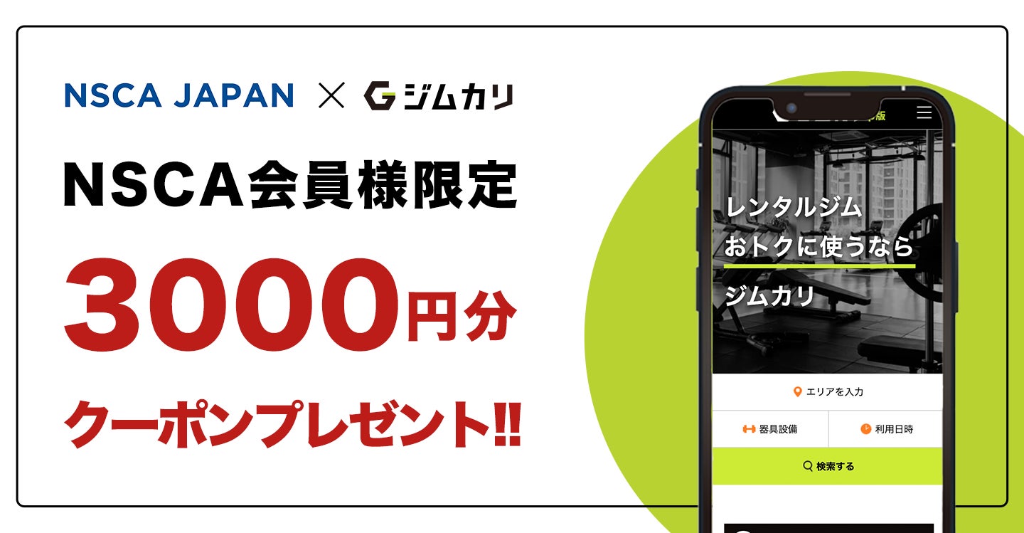 NSCAジャパン会員のトレーナー限定で、ジムカリをお得に利用できるクーポンを発行します。