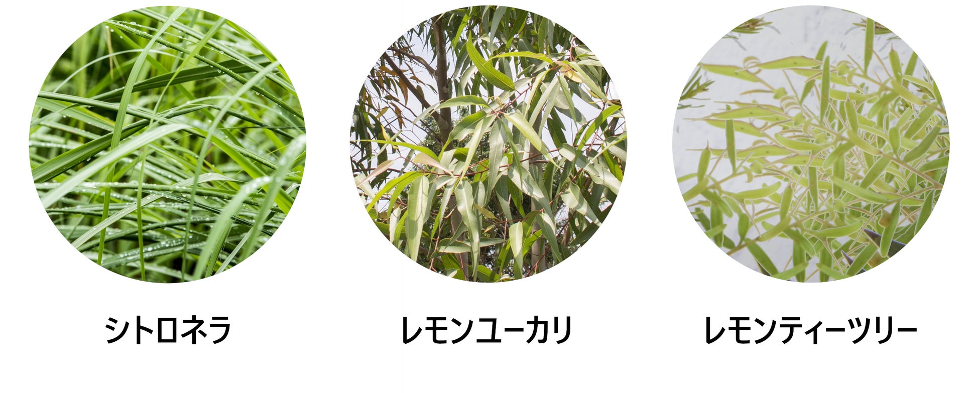 今回の新商品では、定評をいただいている商品【エクストラ】に処方されているシトロネラ、ニアウリに加え、新しくキー成分としてレモンユーカリ、レモンティーツリーを加えました。