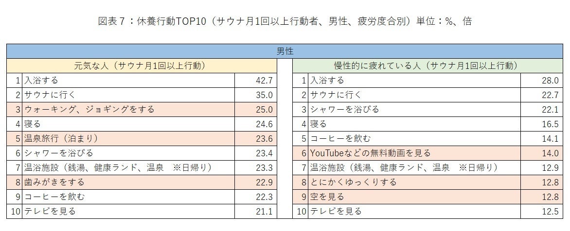 - 元気な人ほどアクティブにリフレッシュ! サウナーが実践する休養行動TOP10