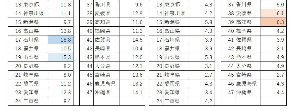<女性> 1位 徳島県、2位 高知県、3位 愛媛県