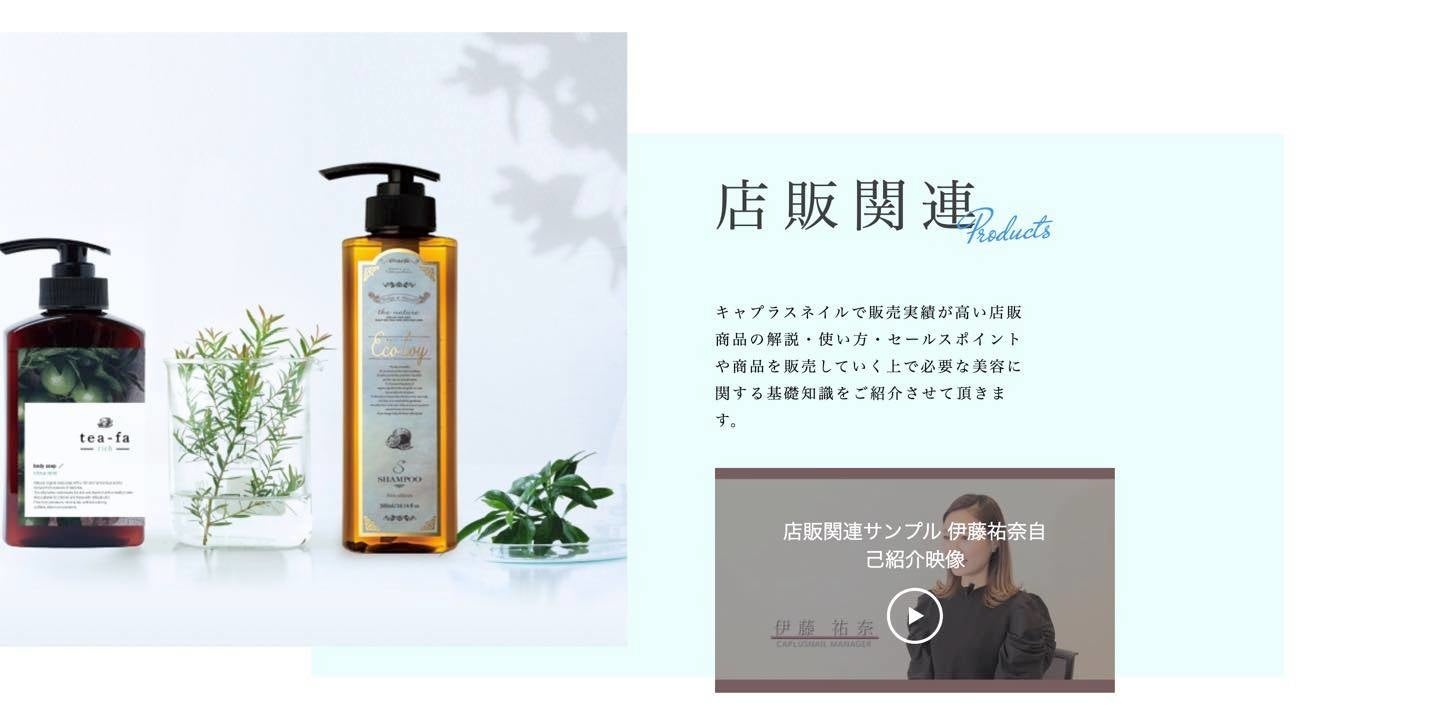 「技術指導者がいないため、ネイリスト歴の浅いスタッフを雇いにくい」「メニューや価格を現場のネイリスト任せにしているので不安」「ネイルスタッフを雇いたいが、自身は美容師なのでどう教育していいかわからない」「店販で何を売ったらいいかわからない」といった悩みを、豊富なセミナー動画で解決に導きます。