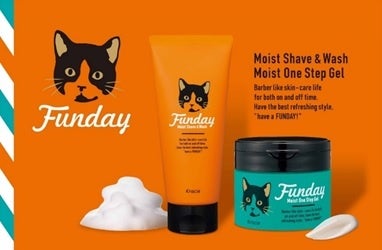 “いいシェービングで、いい肌へ。”「FUNDAY」は毎日の面倒なヒゲ剃りを快適にし、前向きにヒゲや肌と向き合う男性をサポートするスキンケアブランドで、パッケージの「猫」がトレードマークです。