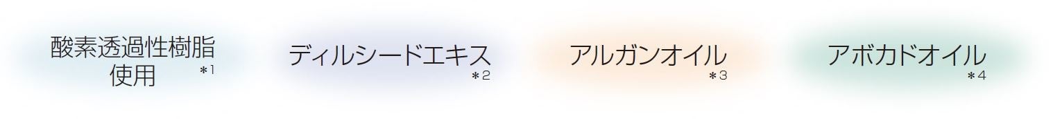 *2 イノンド種子エキス(保湿)*3 アルガニアスピノサ核油(保湿)*4 アボカド油(保湿)
