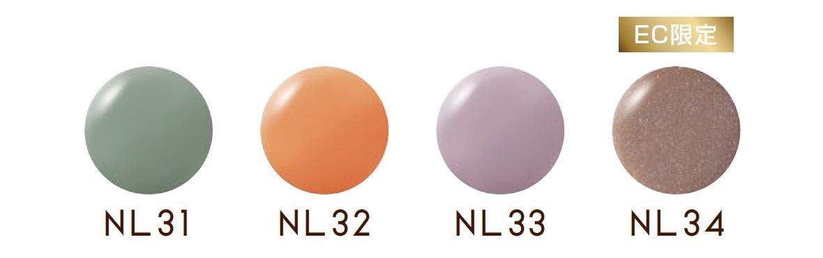 このたびの新色は、軽やかで心地よい4色のカラー。春の彩りを指先にプラスします。オンライン限定発売の「NL34 トワイライトラバー」は、お手持ちのネイルの上に重ね塗りすることで、ニュアンスチェンジにもおすすめです。※「NL34 トワイライトラバー」は、オンライン限定(エクセル公式オンラインストア及びamazon、ロハコ、@cosmeショッピング等)でのお取り扱いとなります。