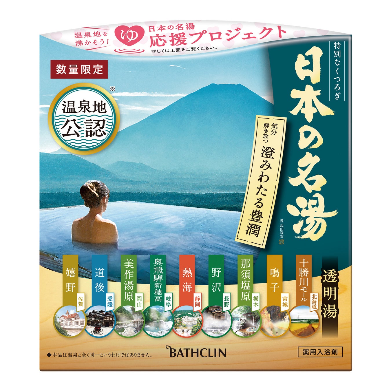 株式会社バスクリン(本社:東京都千代田区 社長:三枚堂正悟)は、外出の自粛を余儀なくされる中、自宅のお風呂で温泉気分を楽しめると、ご好評いただいております『温泉地公認※』入浴剤「日本の名湯」シリーズから、2021年に数量限定で販売し、多くのお客様にご好評いただいた、全国各地の透明湯を詰め合わせたアソートセット「日本の名湯 澄みわたる豊潤」を3月7日(月曜日)に数量限定の企画品として再度発売いたします。