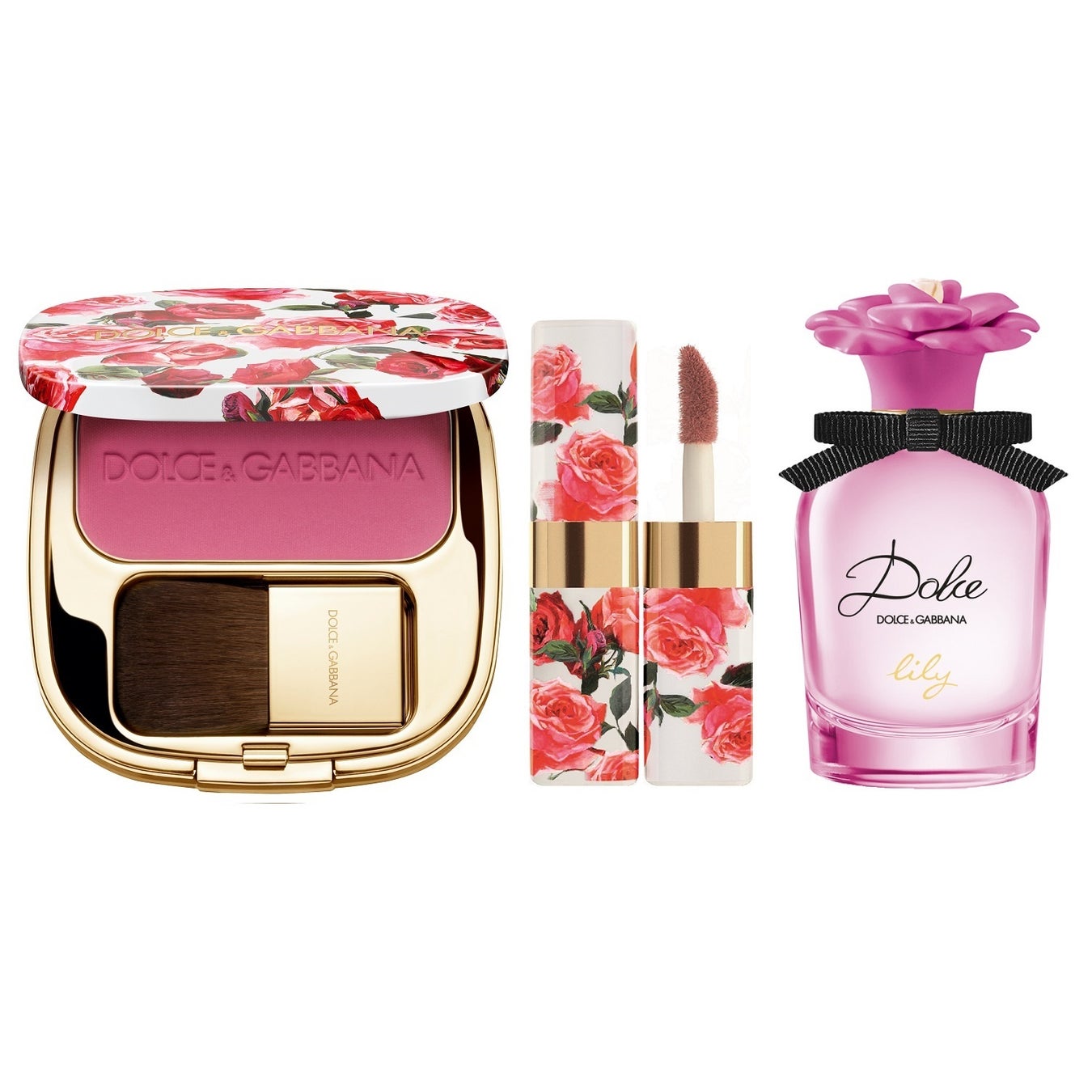 アイコニックなローズのパッケージに包まれた繊細なバラのような、人気のチーク「ブラッシュオブローズ ルミナスチークカラー」は選べる3色。同じく美麗なローズのパッケージが印象的なリキッドマットリップ「ドルチェシモ マット リキッド リップカラー」の人気色と、ピンクのユリの花の香りが特徴的な3月2日発売予定の新フレグランス「ドルチェ リリー オードトワレ」のミニサイズを組合せました。