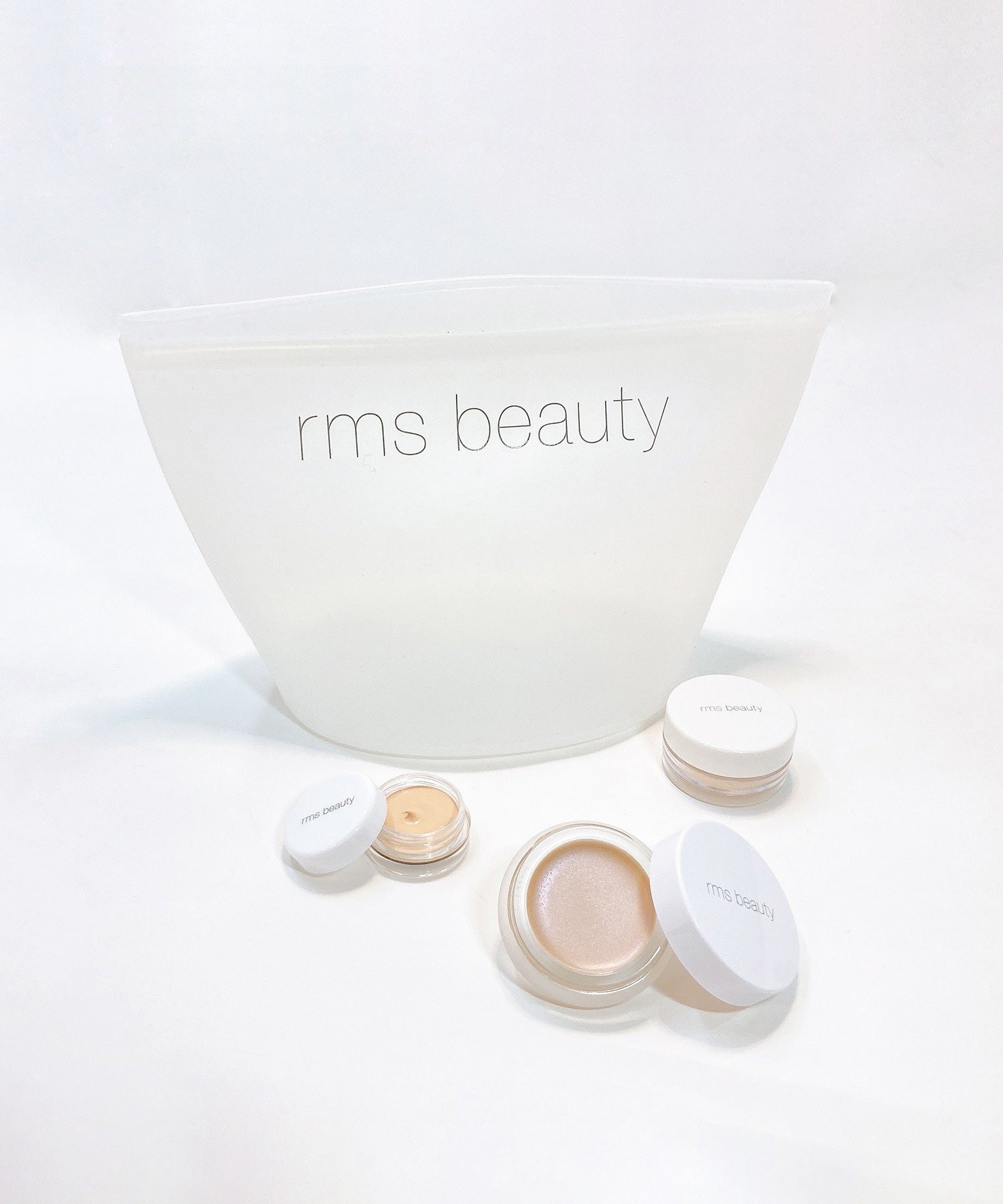 rms beautyの人気アイテム、『シャンパンローズルミナイザー』。人気のベースメイクアイテム、クリームファンデーションミニ、アンパウダーミニと丈夫なシリコンポーチつきのZOZOCOSME限定キットです。
