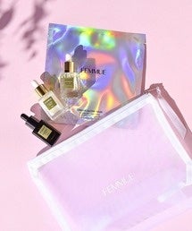 FEMMUEの人気No.1導入美容液「ルミエール ヴァイタルC」、水光肌美容液「グロウドロップス」、オイル美容液「アイディアルオイル」のトラベルサイズと、シートマスクが1枚ついたお得なキット。ZOZOでしか買えない100個限定のスペシャルキットです。
