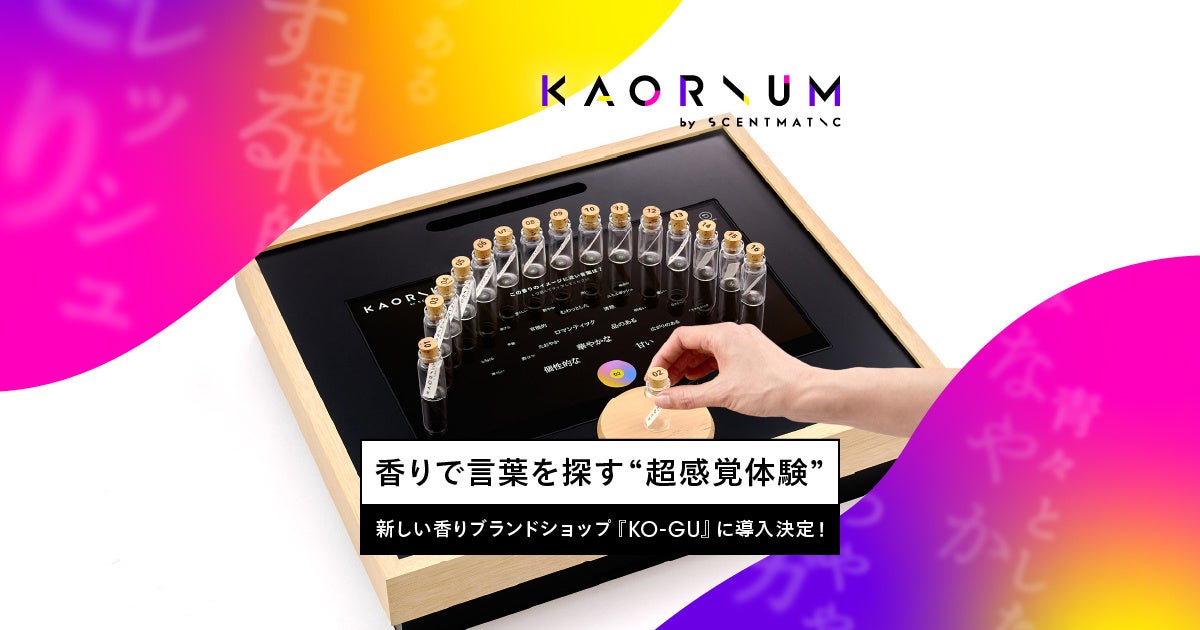 嗅覚のデジタライゼーションによって新たな顧客体験を提案するSCENTMATIC株式会社(代表取締役:栗栖俊治、本社:東京都、以下「セントマティック」)は、同社が開発した香りと言葉の融合体験ができるAIシステム「KAORIUM (カオリウム)」を使った香り体験デバイスを、2022年3月3日(木)ルミネ新宿 ルミネ1にオープンする香水のセレクトショップNOSE SHOP(ノーズショップ)の手掛ける、新しい香りブランドショップ『KO-GU(コーグ)』に初導入いたします。
