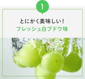 一番の問題点でもあった牛乳 (ミルク )風味をマスキングした、こだわりのすっきりとした白ぶどう味に仕上がりました 。しかも、果糖ぶどう糖液糖フリーで、糖質2.9g/100mL 女性にも嬉しいプロテイン