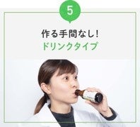 “飲みたい時にすぐ飲みたい”を叶えるために粉から作る面倒な手間や、シェーカーを洗う手間もいらないドリンクタイプに。またリサイクルしやすい瓶を採用することで環境にも配慮しています。