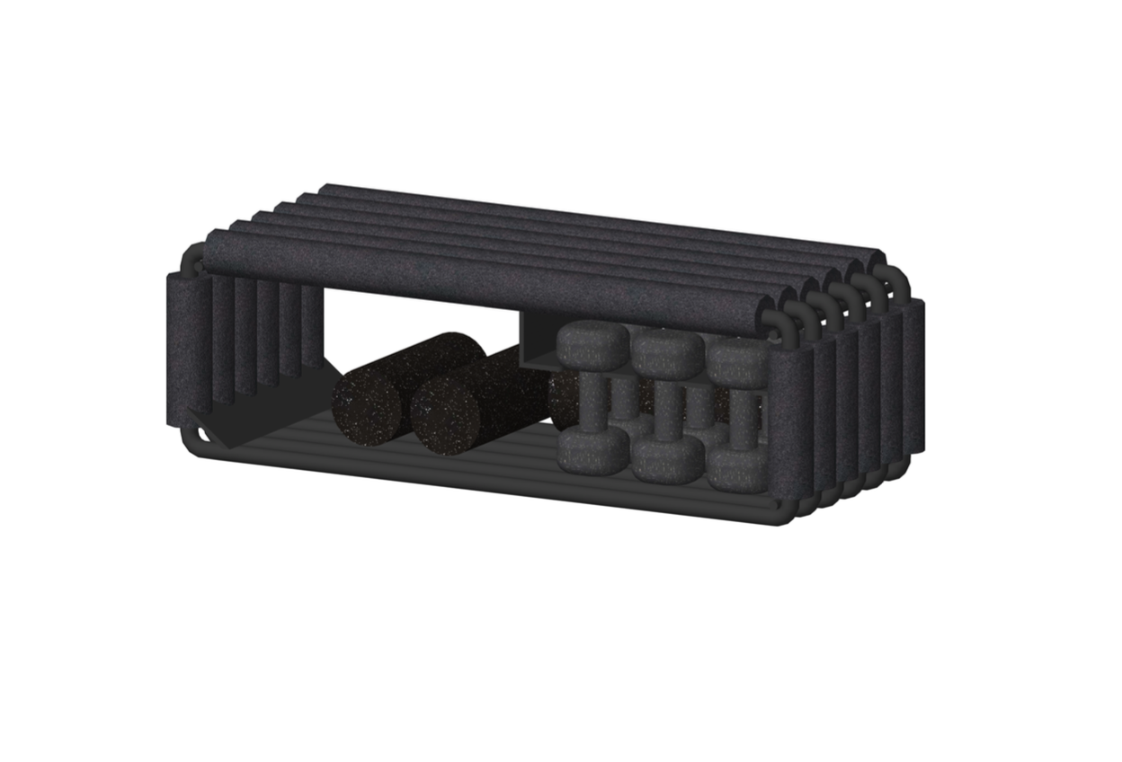 “置くだけでジムになる”をコンセプトに、小スペースでのトレーニングからケアの両方が可能な新プロダクトを用意。ダンベルやベンチを使った負荷をかけたトレーニングはもちろん、フォームローラーやストレッチポールなどケアやコンディショニングに利用できるアイテムまで包括されており、このアイテム一つあれば、何もないスペースでもパーソナルジムに早変わりすることができます。