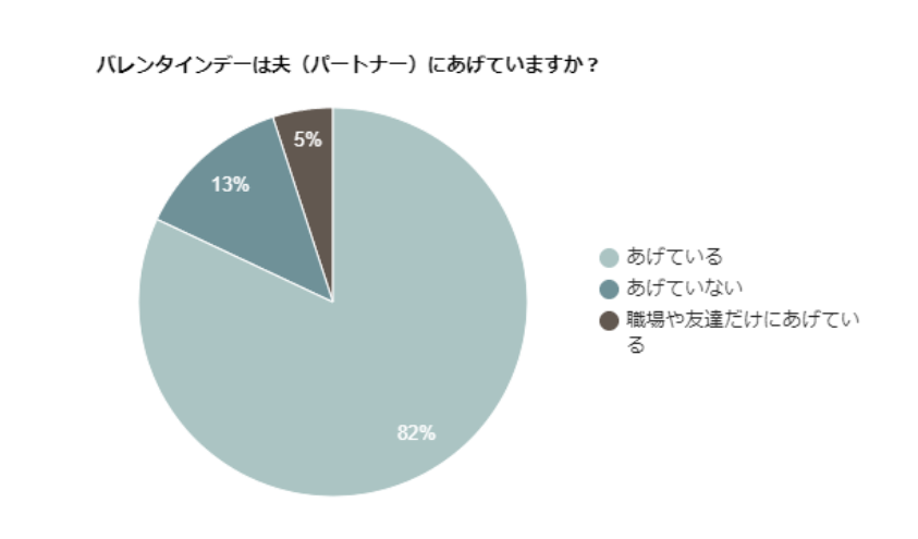 まず、綺和美では「バレンタインデーは夫(パートナー)にあげていますか?」というアンケートを行いました。すると、82%もの人が「あげる」と回答したのです。