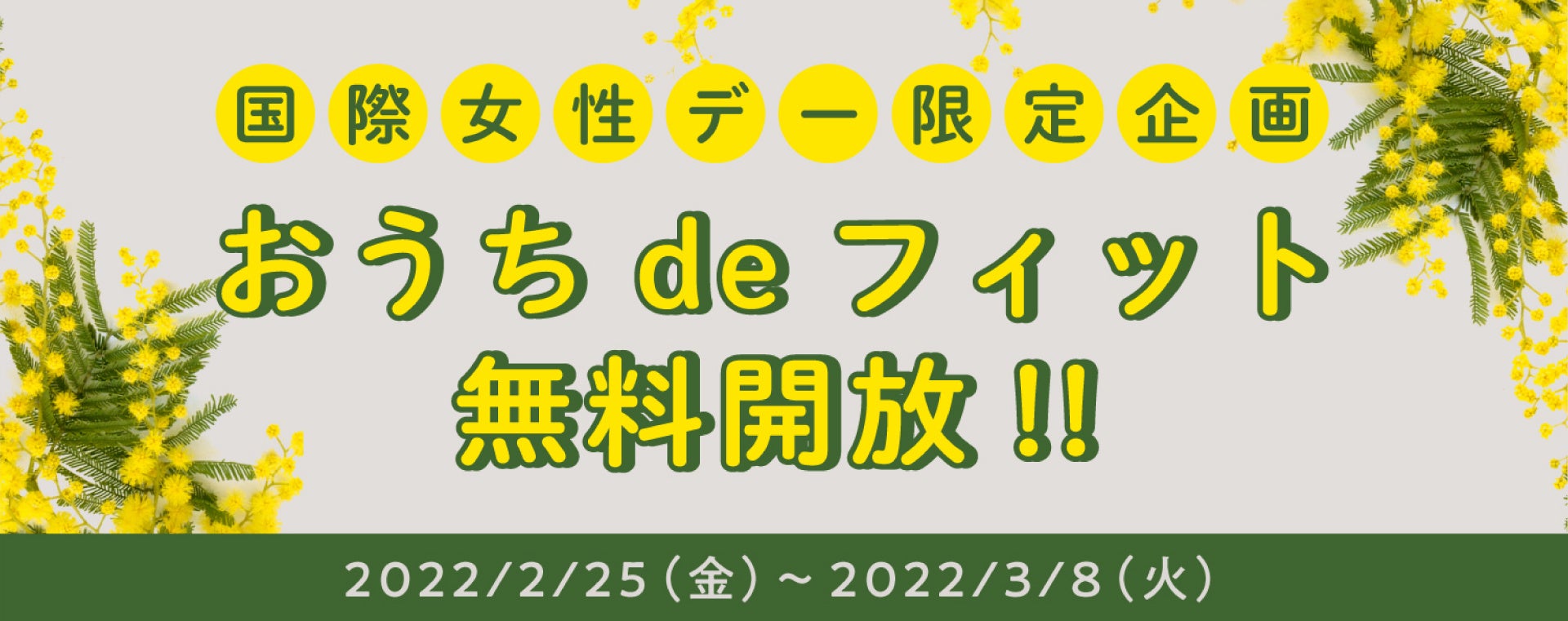 女性専用のフィットネスブランドを通して、心とカラダを動かすフィットネスで女性のウェルネスを応援する株式会社 LIFE CREATE(本社:北海道札幌市、代表取締役:前川 彩香、以下 当社)は、国際女性デーにあわせて、月額制オンラインフィットネスサービス『おうちdeフィット』を2022年2月25日(金)~2022年3月8日(火)までの期間限定で無料開放いたします。