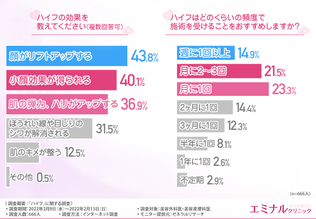 先程の調査で、ハイフの効果や、推奨する施術頻度について分かりました。