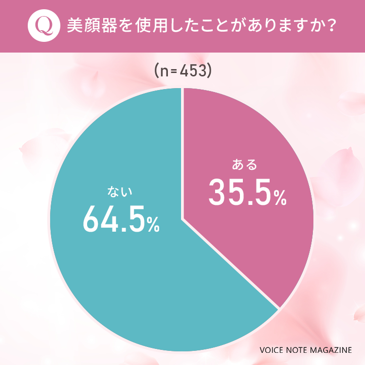 今回は、女性のボイスノート会員453人を対象に、「美顔器」についてアンケートを実施しました。