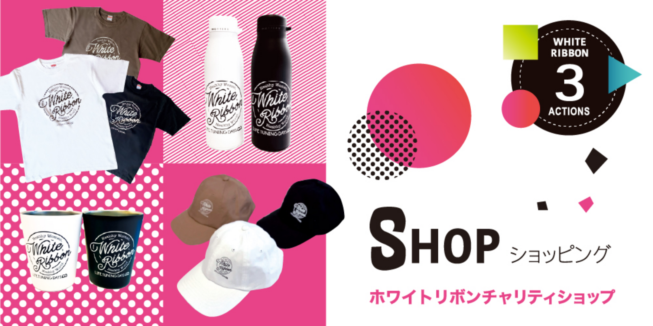 お買い物していただいたお買い上げ金額の一部がホワイトリボン活動に寄付される商品が勢揃い。 ぜひショッピングを楽しんで応援をお願いします。