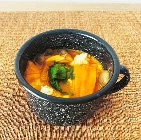 <カット冷凍野菜と人参ジュースでつくるスンドゥブ鍋>