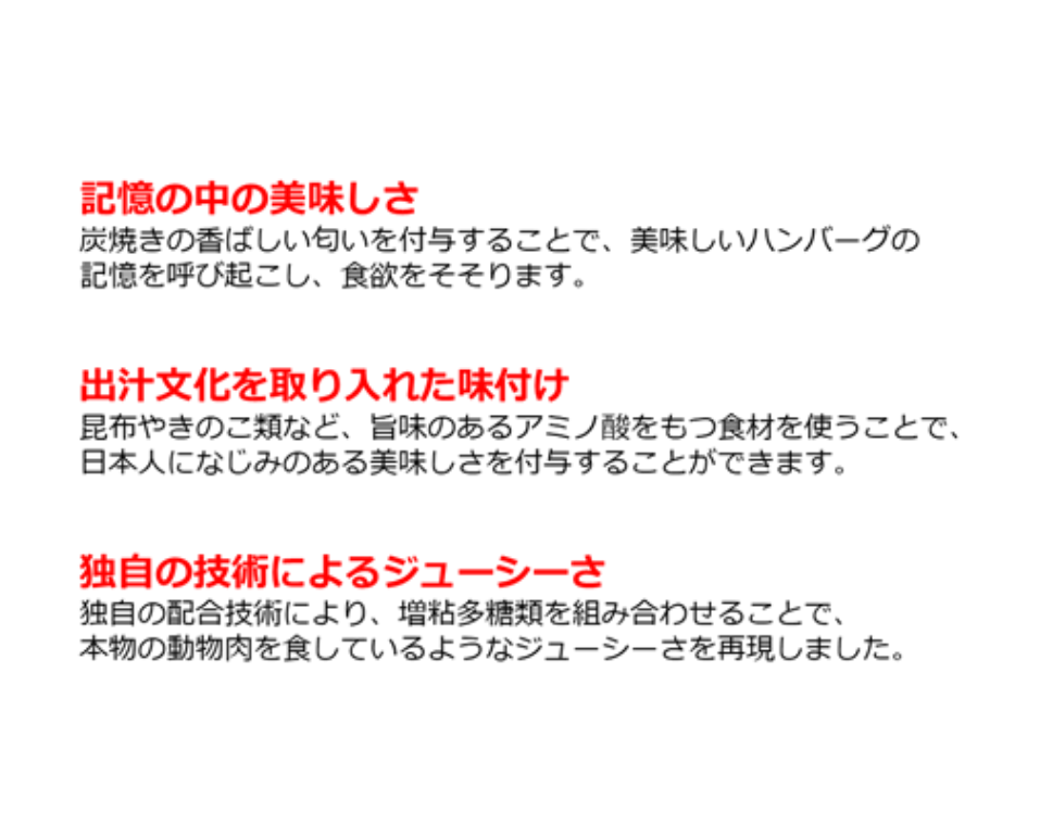 世界の消費者に安全、安心で美味しい植物肉を使用した製品を、競争力のある価格や品質にて提供するために、3社が共創し、新しい価値を創造します。