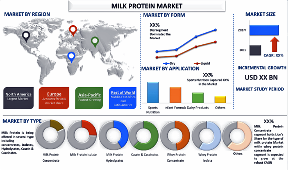 タイプ別では、濃縮ミルクプロテインが大きなシェアを占める
