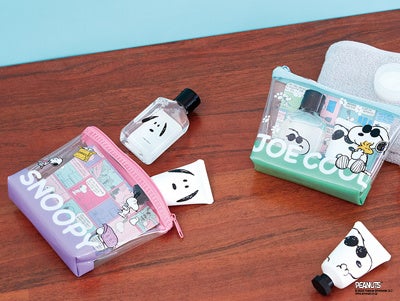 スヌーピーとピーナッツフレンズの女の子たちの楽しげなひとときが描かれたポーチセット。