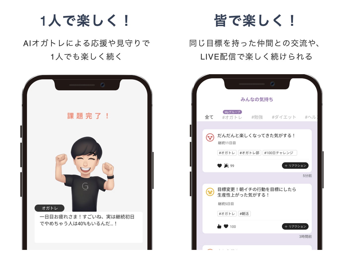 • AIオガトレ君による継続サポート機能/自動連携カレンダー/SNS投稿機能