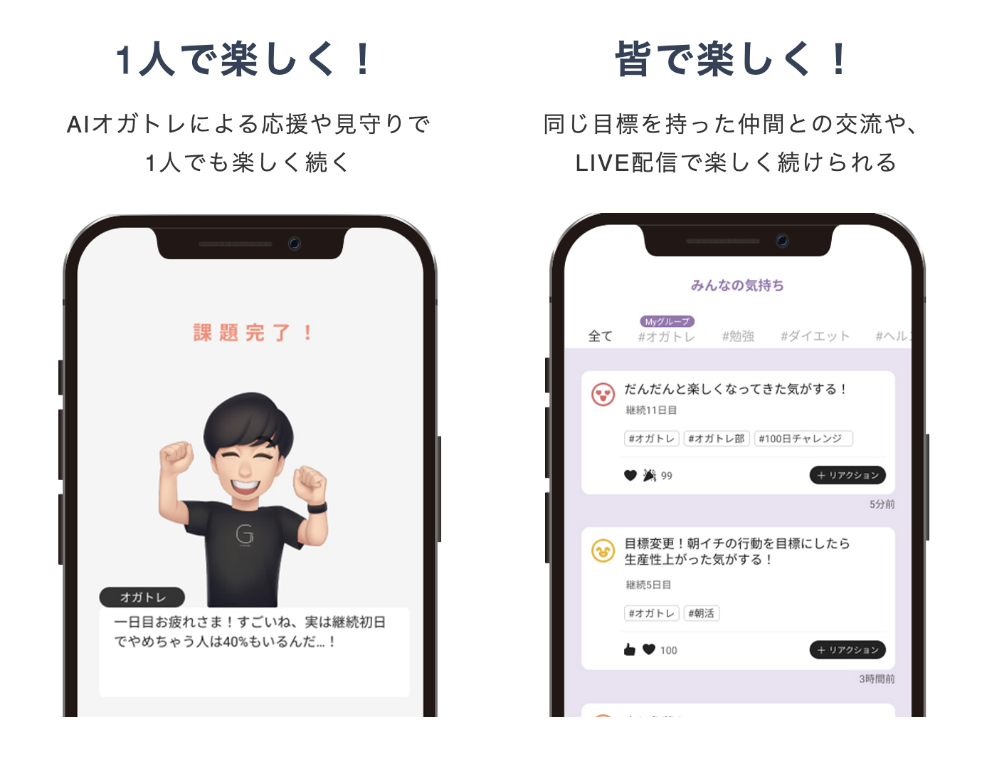 - AIオガトレ君による継続サポート機能/自動連携カレンダー/SNS投稿機能