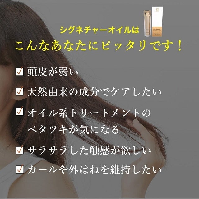 今回株式会社kyogokuより販売されました「シグネチャーオイル」は、3Dパウダーオイル処方なので、オイルトリートメント独特の重たいベタッと感がなくサラサラに仕上がります。